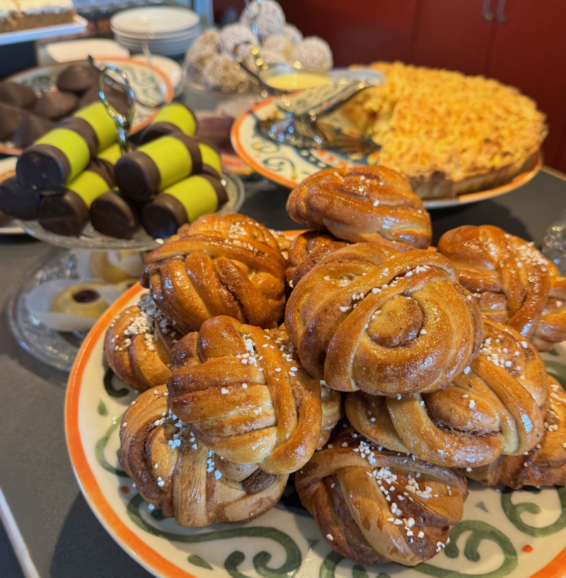 On weekdays, the daily special is served on the buffet. Delicious homemade food that is best described as classic home cooking. There is always a vegetarian option and a large salad buffet and bread. A menu for both adults and children that varies throughout the year, such as pancakes, sandwiches, Caesar salad or pie.